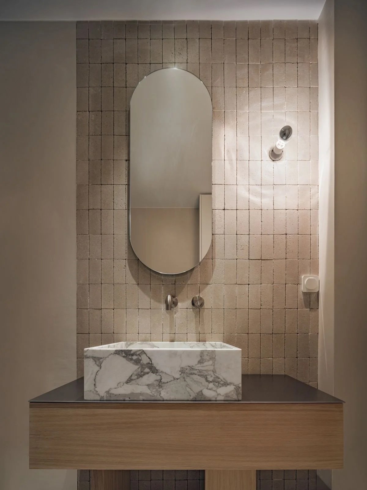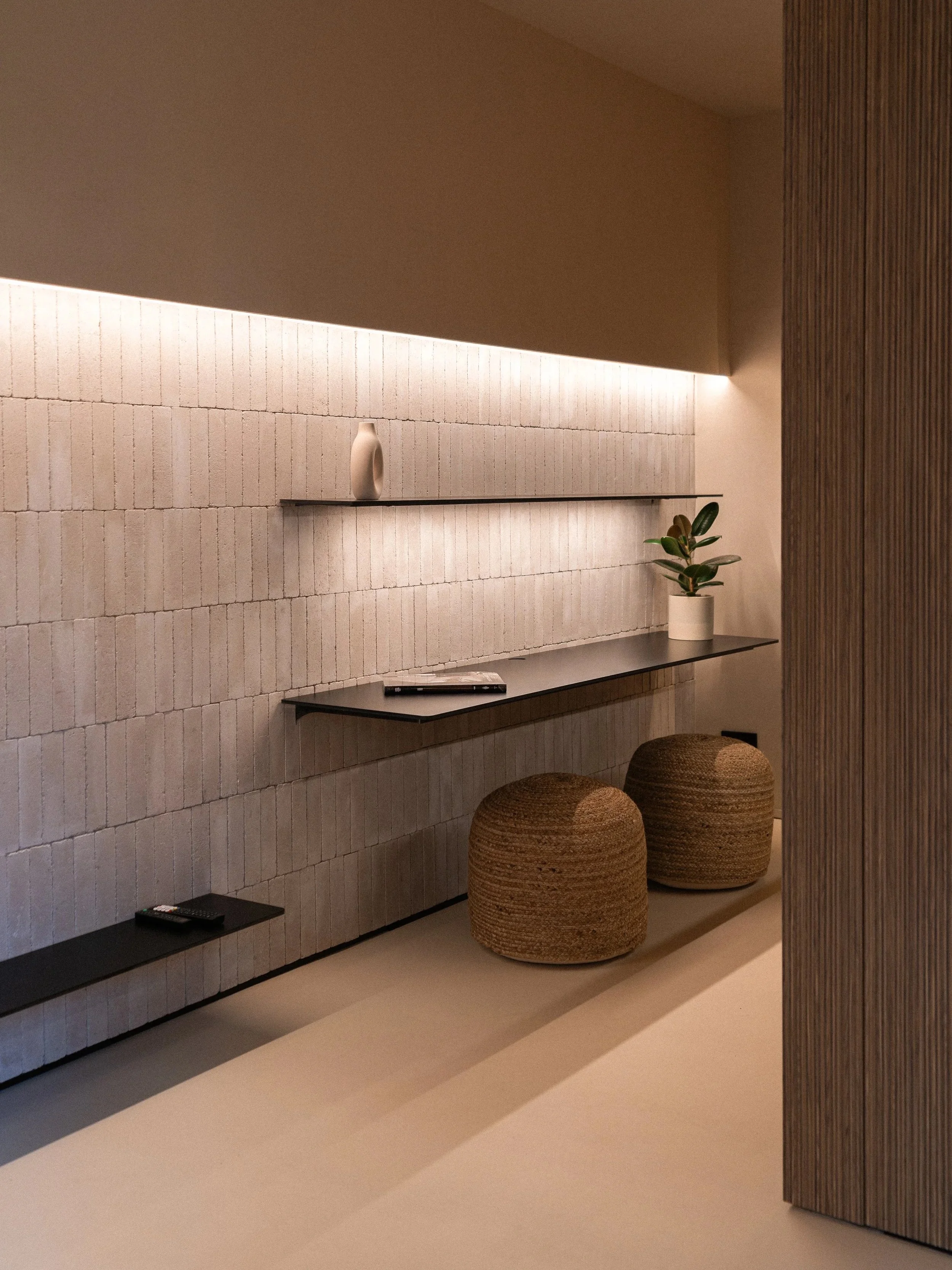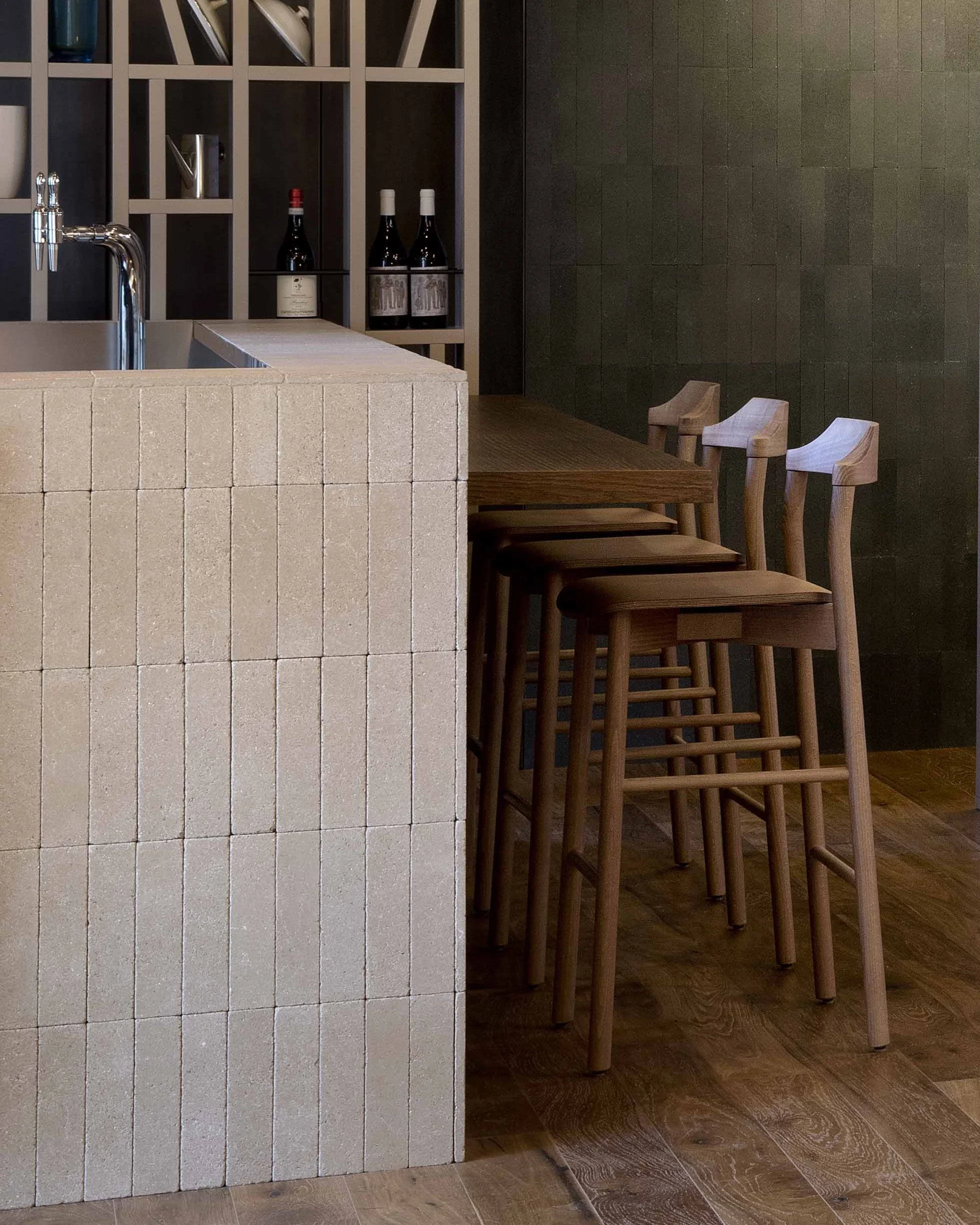 Per chi lavora nella progettazione d'interni, tutto questo si traduce in un materiale che ha qualcosa di non ovvio da offrire. Le superfici in pietra compattata consentono di reinterpretare lo spazio partendo dalla natura come fonte di ispirazione, ma senza cadere nel naturalismo decorativo che spesso accompagna l'uso della pietra negli interni contemporanei. L'imperfezione è qui celebrata, non corretta: le variazioni cromatiche, le sfumature, la porosità non sono difetti da eliminare ma qualità che rendono ogni superficie unica e che costruiscono una presenza spaziale difficile da ottenere con materiali più uniformi.