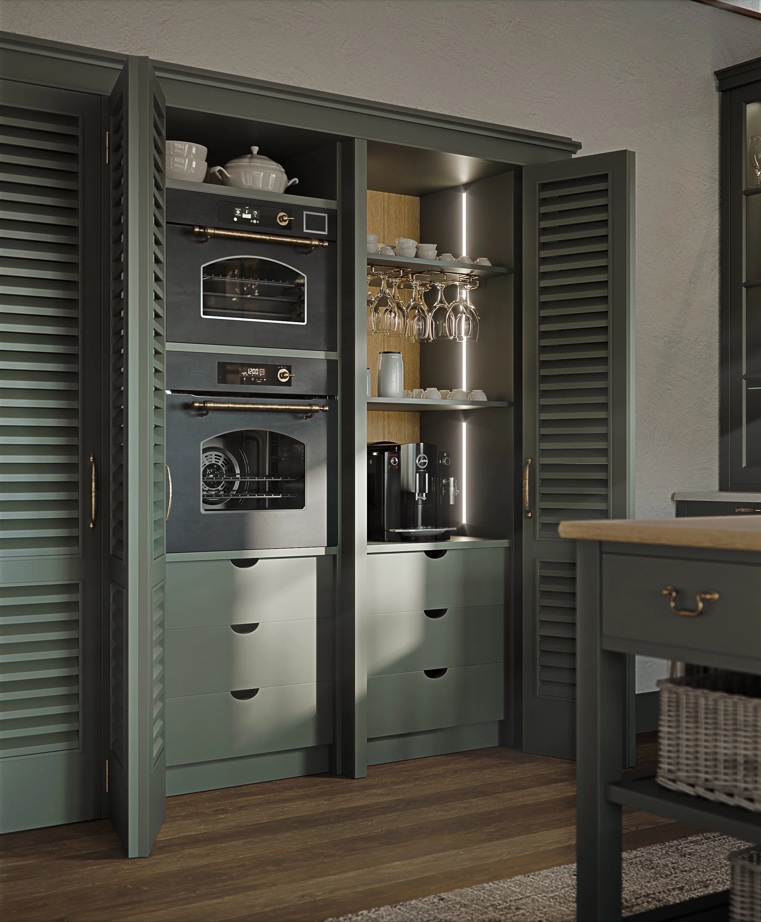 → Non fermatevi alla prima impressione visiva. Aprite i cassetti, guardate l'interno delle dispense, osservate come sono organizzati gli spazi contenitivi. È lì che si capisce davvero come lavora Marchi e perché un brand così definito stilisticamente riesce a funzionare in progetti molto diversi tra loro.