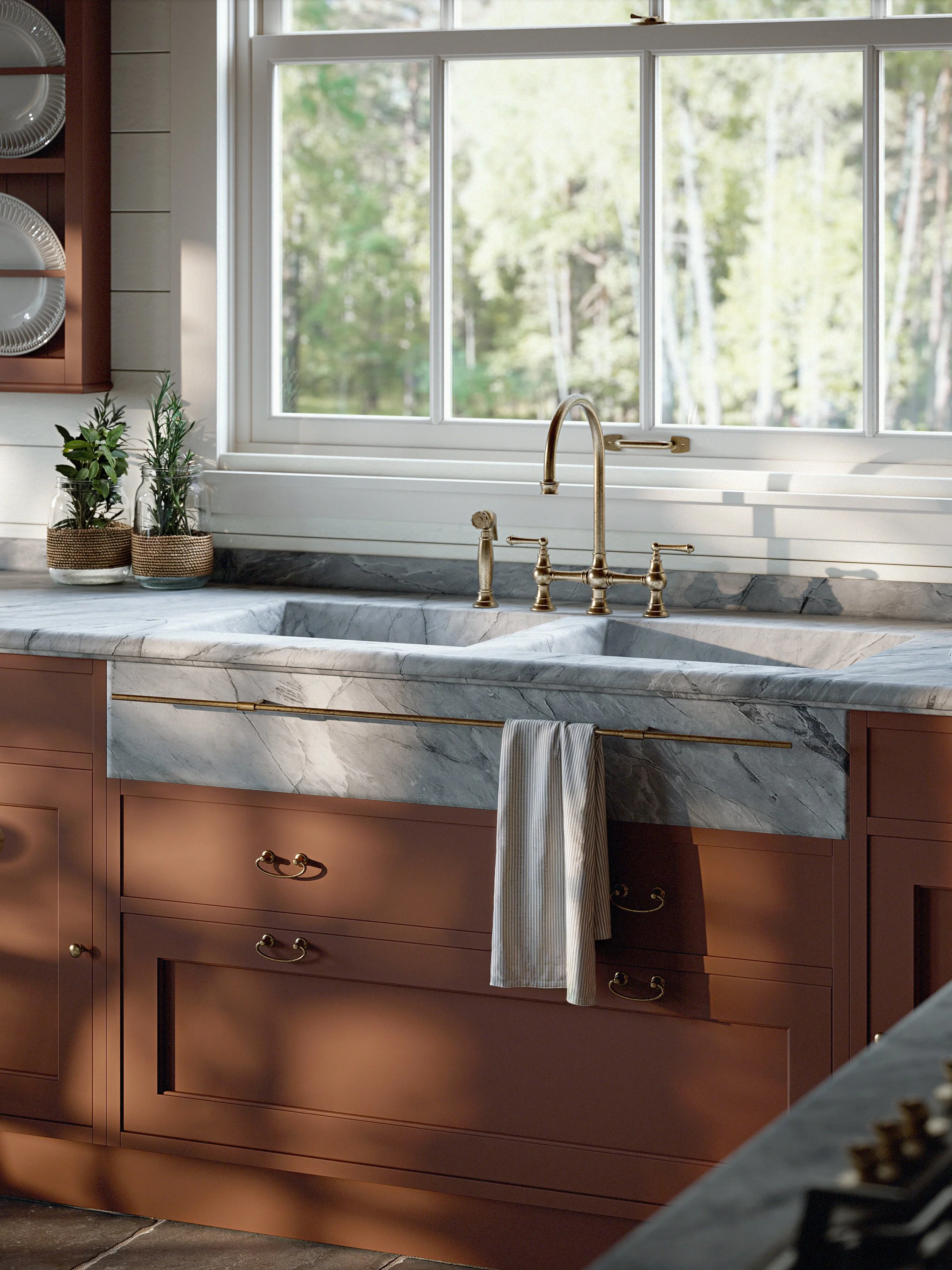 Il linguaggio si è evoluto, ma l'identità è rimasta intatta. Dalla matrice country inglese delle origini, con il legno, la pietra e il cotto di Country Chic, fino alla collezione Cottage firmata da Flora Marchi nel 2024, il filo conduttore è sempre lo stesso: ambienti autentici, materiali reali, atmosfere che evocano una casa vissuta piuttosto che uno spazio fotografato. Un immaginario che si riconosce subito e che, nonostante sia così definito, trova spazio in progetti molto diversi tra loro. Quello che colpisce di Marchi, visitando lo showroom, non è la facciata. È l'interno. Aprite un cassetto: trovate un sistema di stoccaggio pensato fino all'ultimo millimetro, soluzioni per organizzare lo spazio con una logica che non è mai scontata. È il tipo di cura che si vede solo in chi produce tutto in casa propria, nella sede di Vescovato, dove tecnologia e mani esperte lavorano insieme da mezzo secolo.